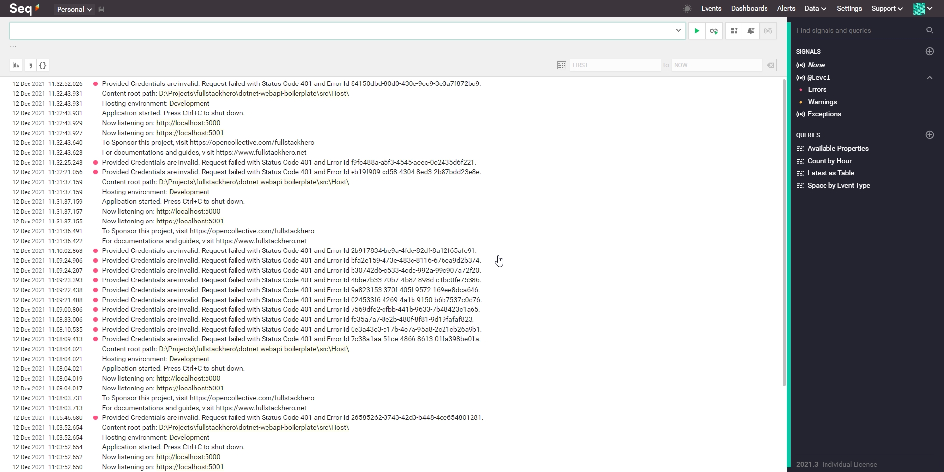 Make sure you have SEQ installed and running on your machine / environment. SEQ is free for Individual use. Once setup, point to the SEQ Instance. It usually runs over the 5341 port.